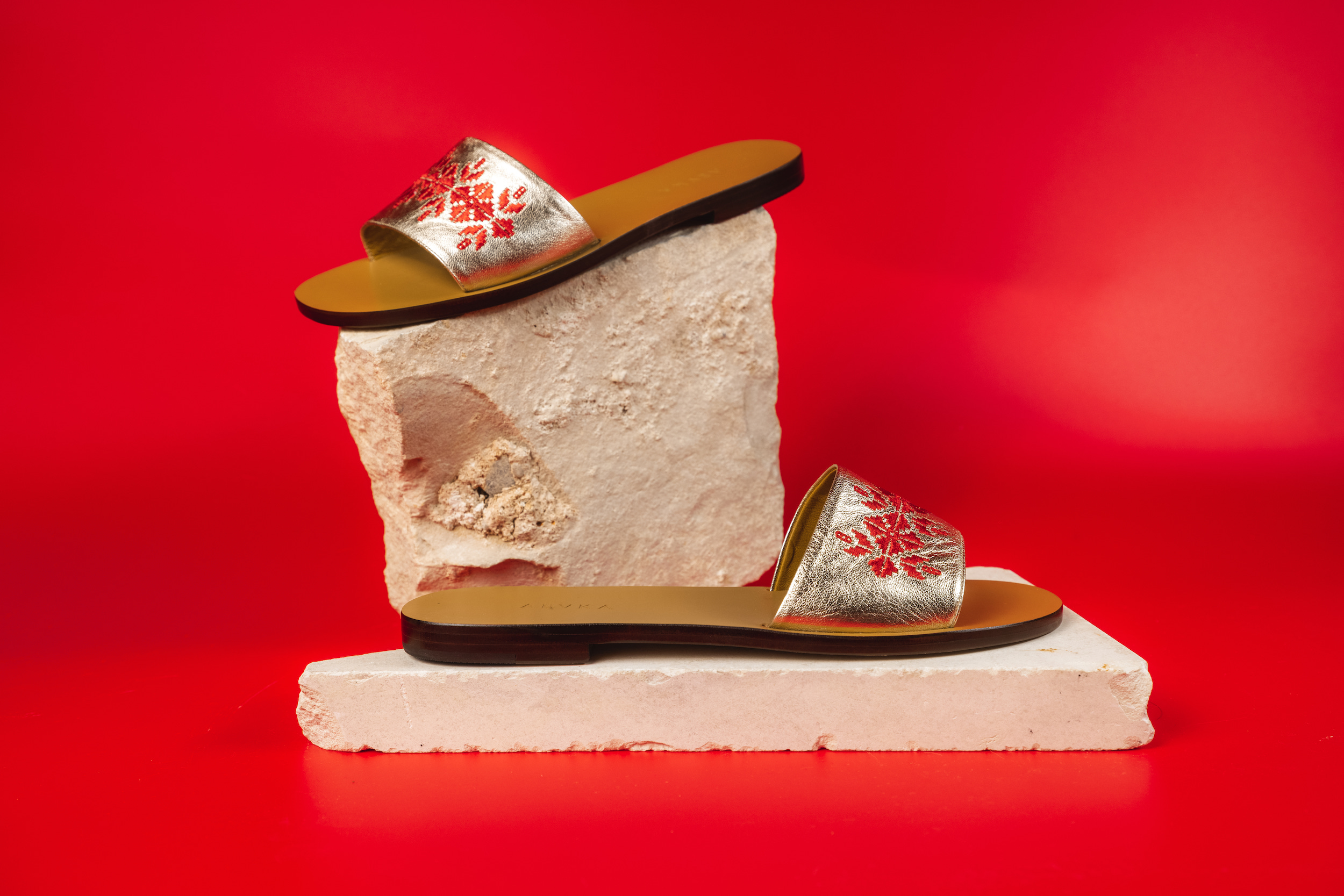 Χειροποίητο σανδάλι από δερμάτινη σόλα και πλατινένιο μαλακό δέρμα