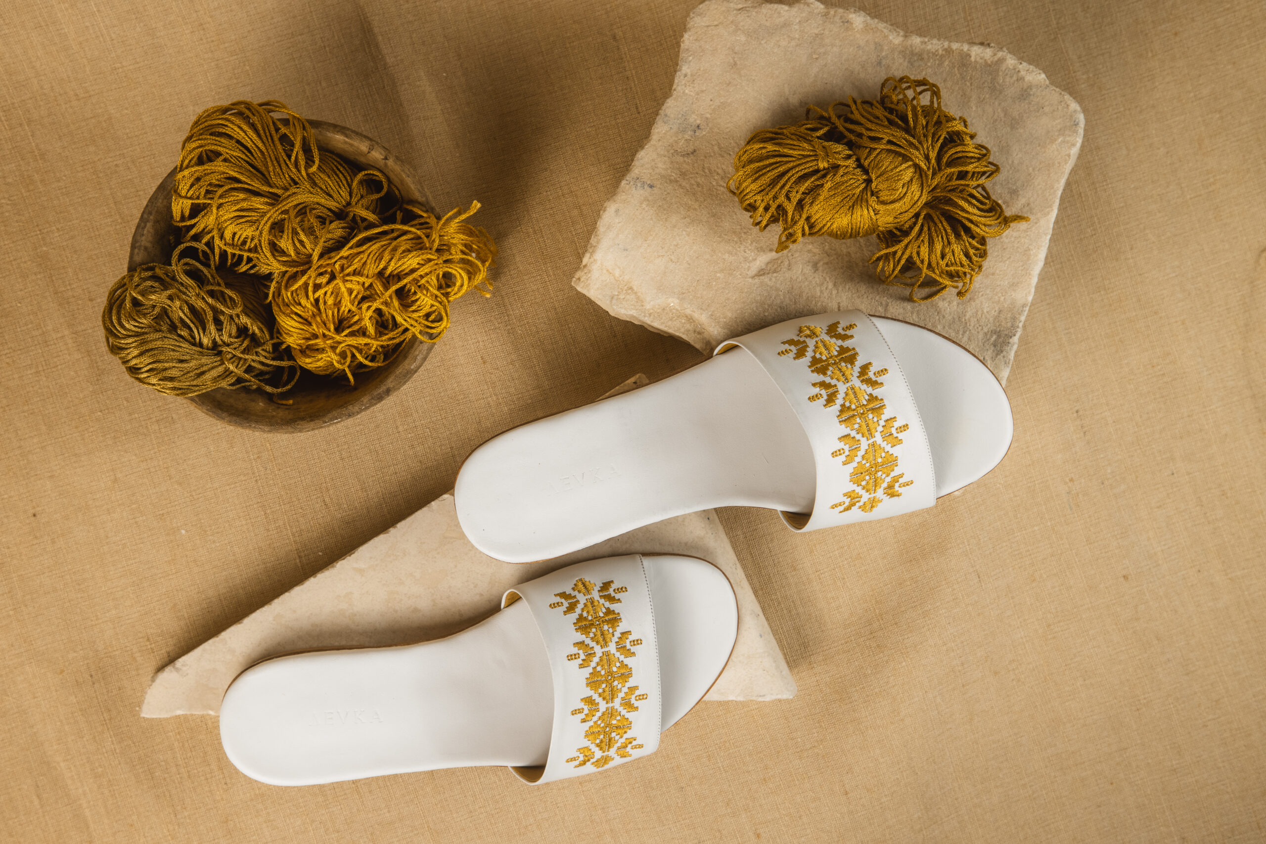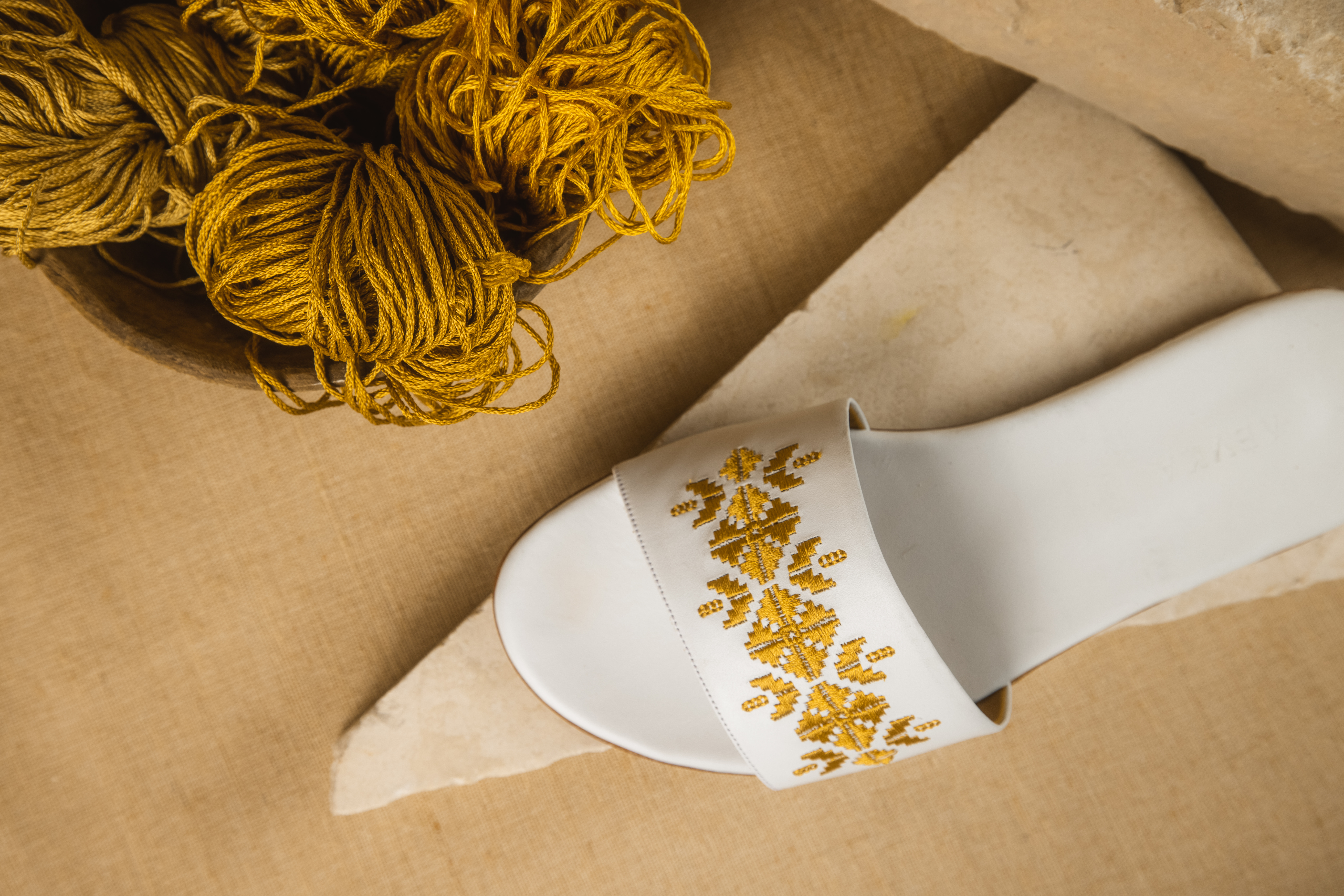 Χειροποίητο σανδάλι από δερμάτινη σόλα και λευκό μαλακό δέρμα