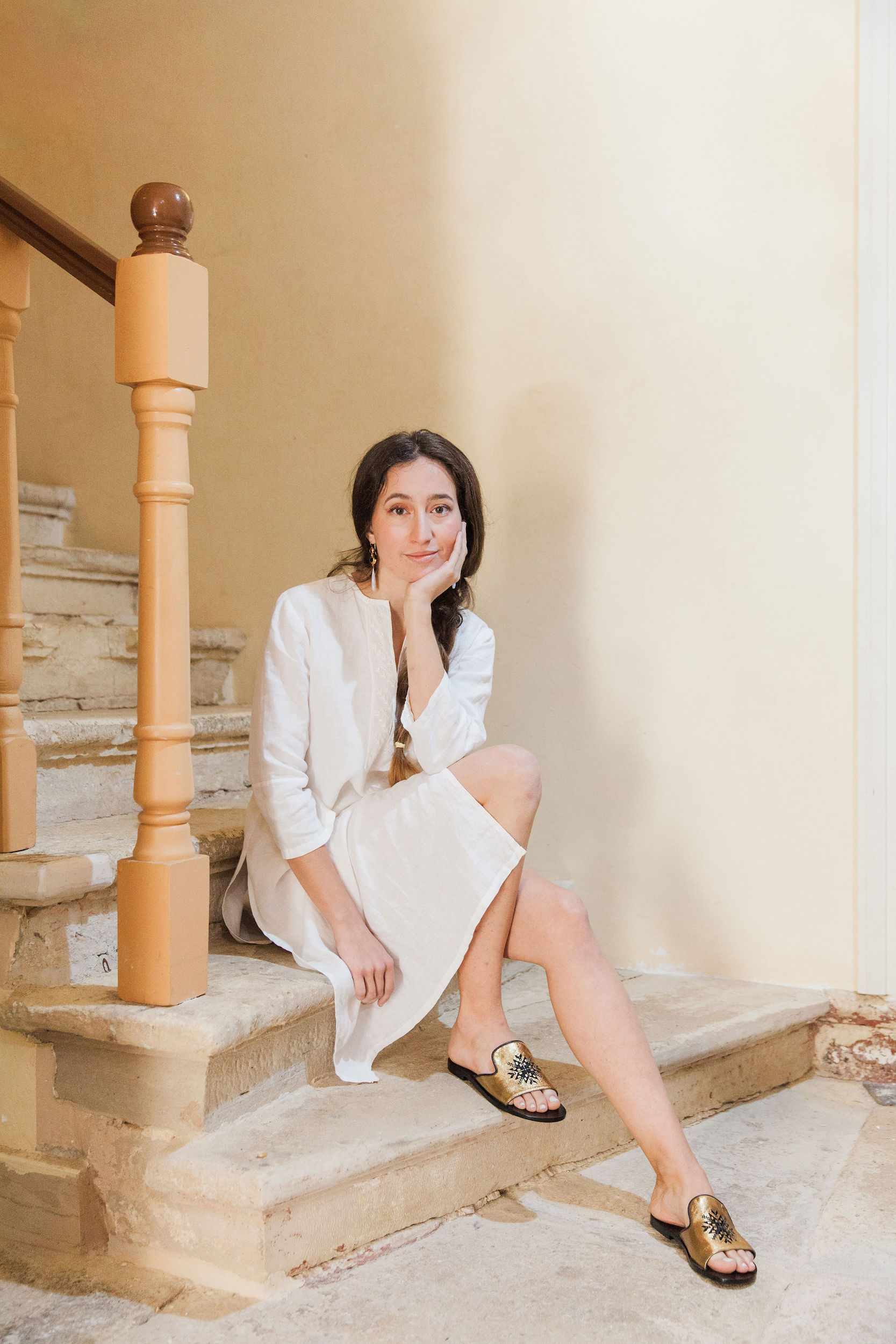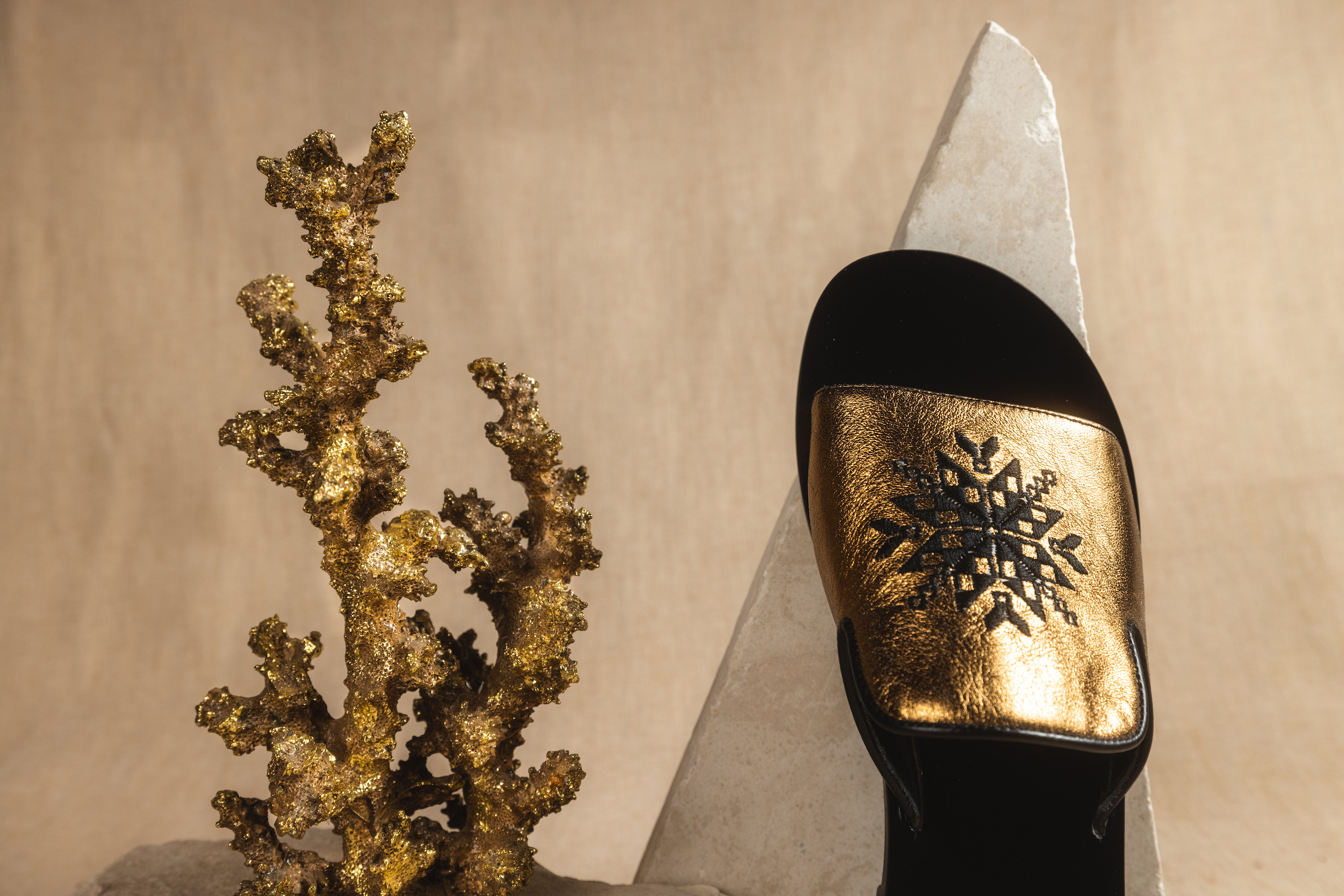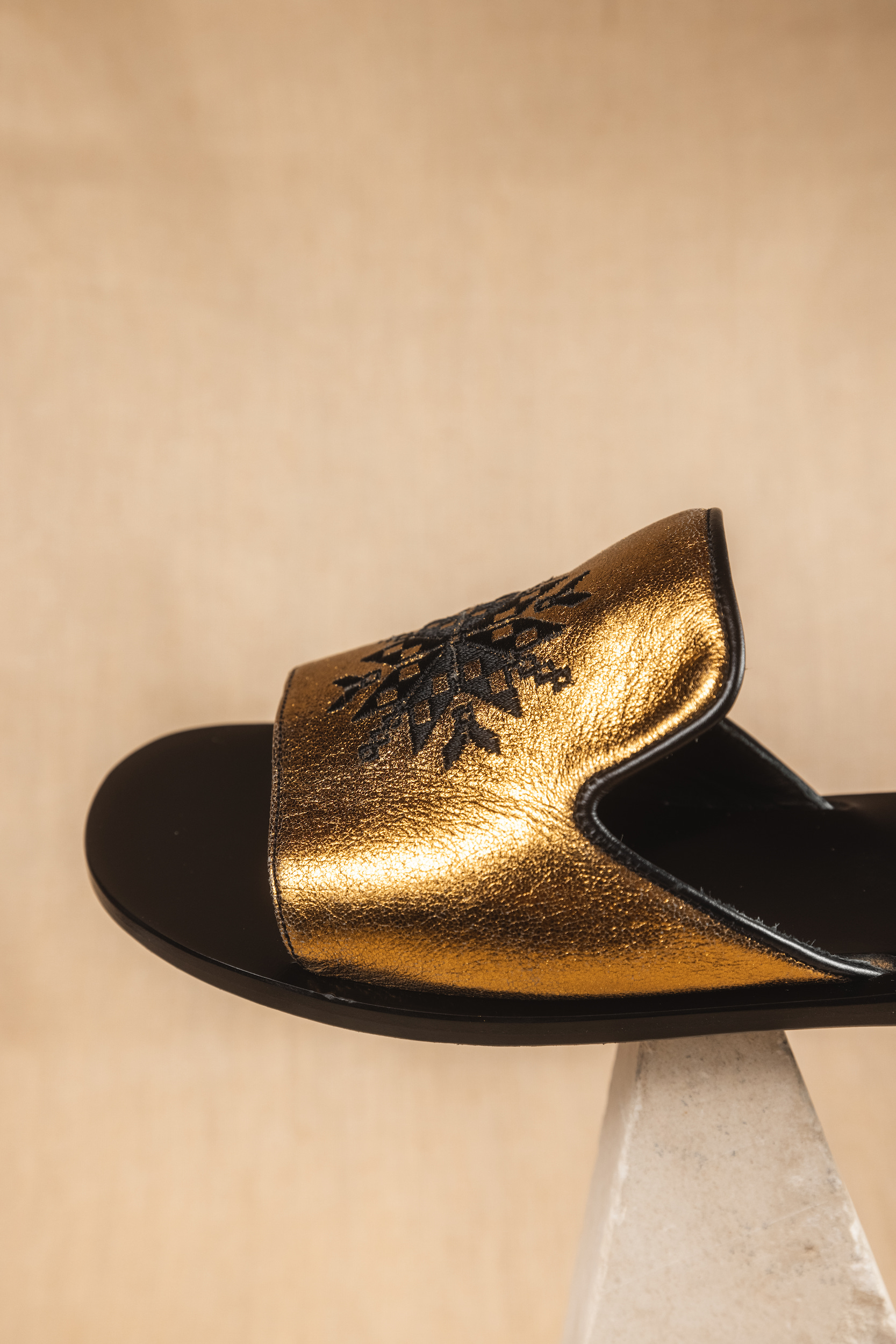 Handcrafted Sandal made of Leather sole and Bronze soft leather , embroidered with our Hariclea Motif