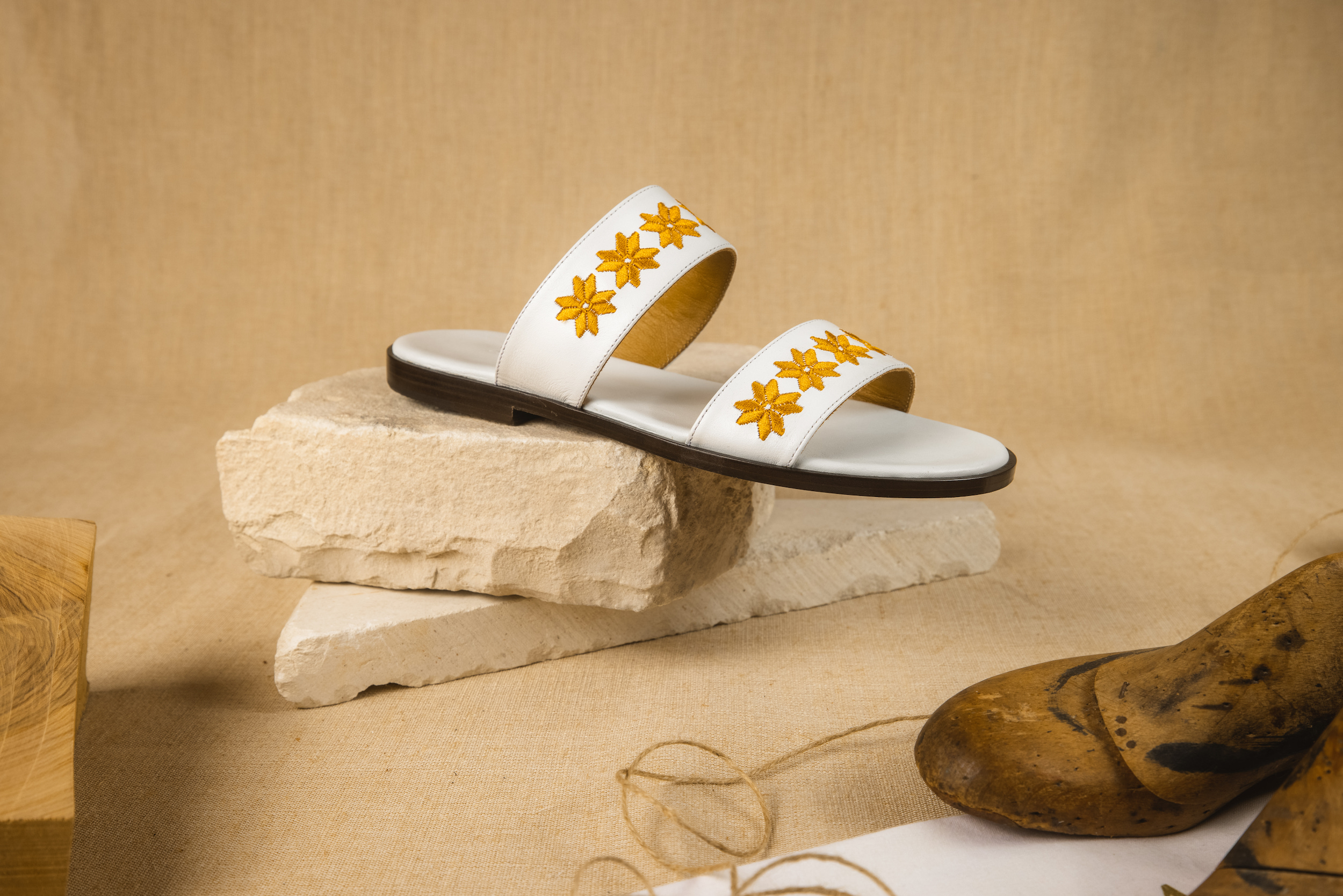 Χειροποίητο σανδάλι από δερμάτινη σόλα και λευκό μαλακό δέρμα
